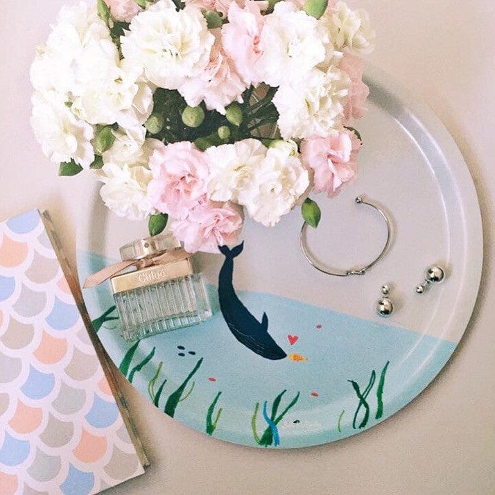 Suki McMaster Round Birchwood Tray - Whale